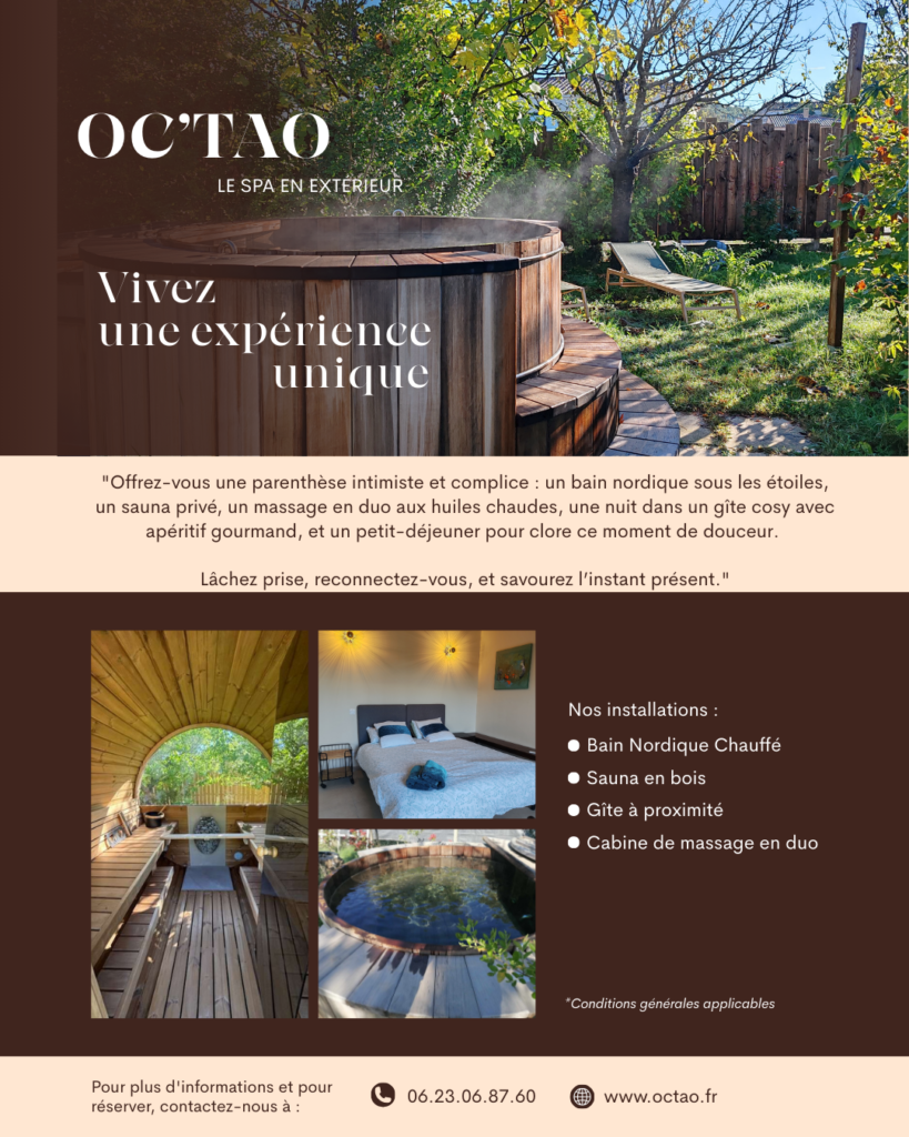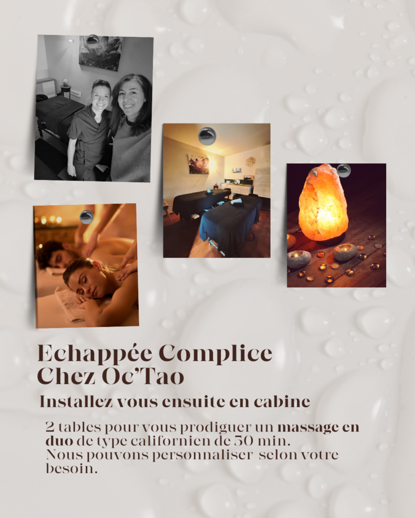Possibilité de prolonger votre moment en rajoutant des prestations parmi la carte d’Oc’Tao.